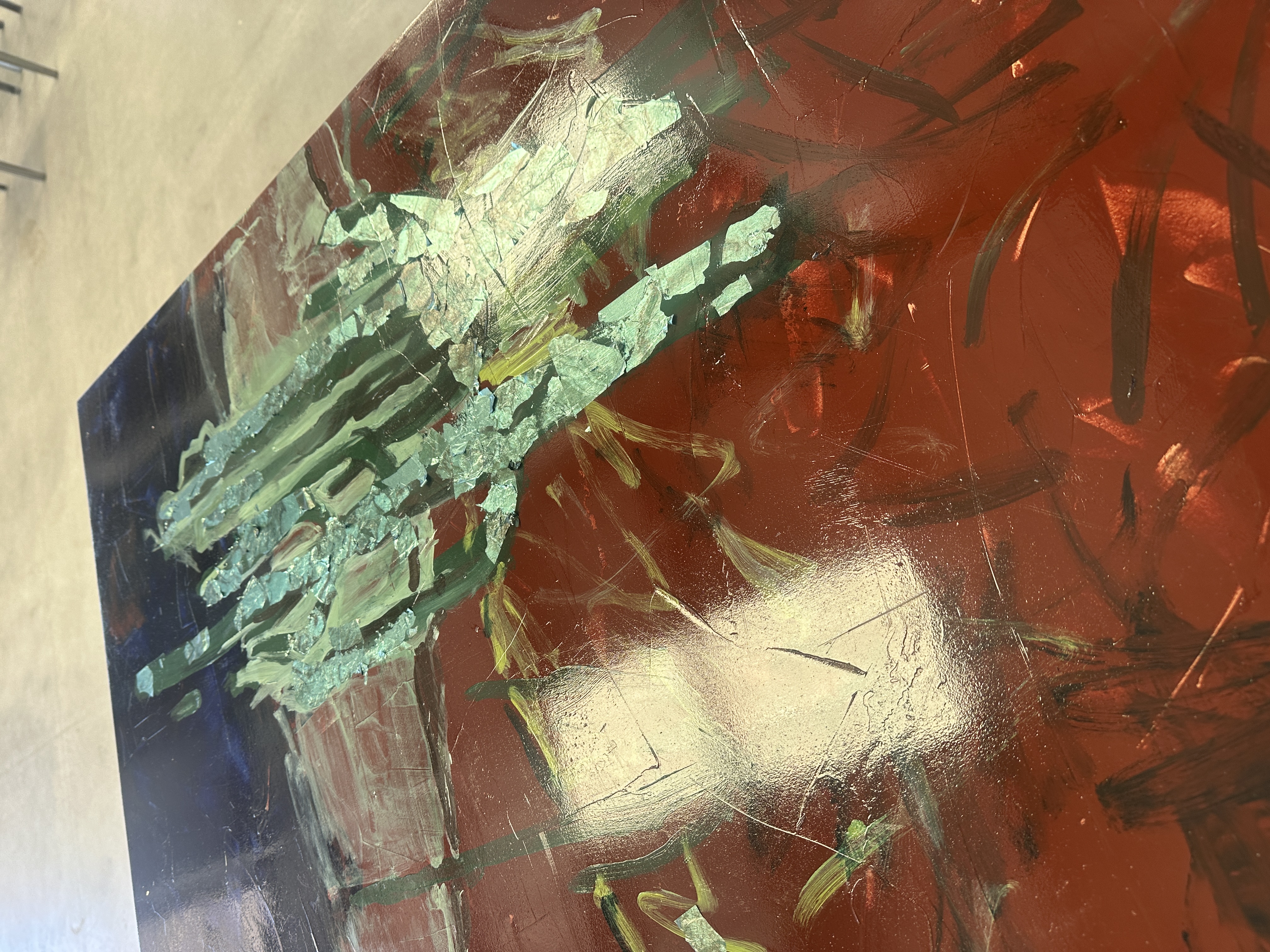 I walked into this session with a clear idea — a red abstract palette inspired by another piece. That decision was made before I touched the surface.