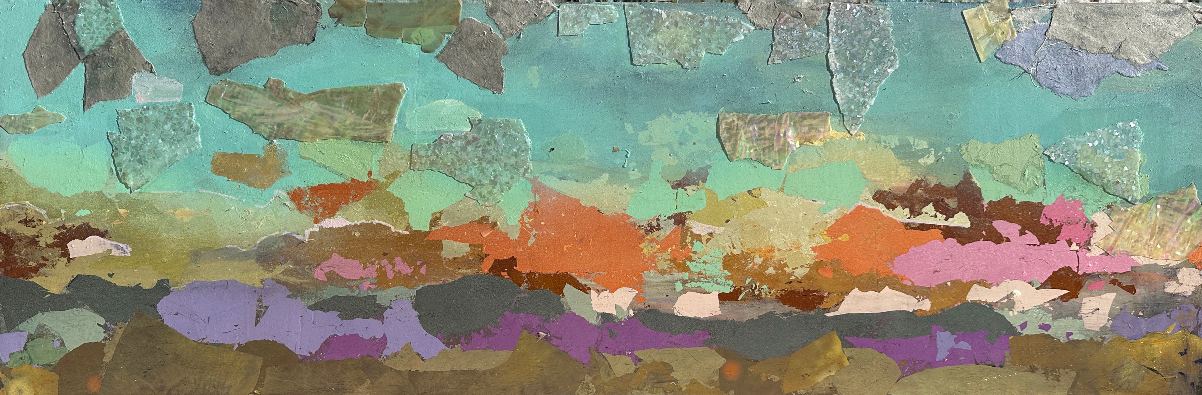 As I near completion of Centuries of Growth, part of the Re-Enter Nature collection, I’m reminded that this whole series has been a practice in surrender. Every layer — the paper I once loved and later removed, the marks left behind, the broken pieces of Mother of Pearl — has been teaching me to follow what’s unfolding rather than what I planned.