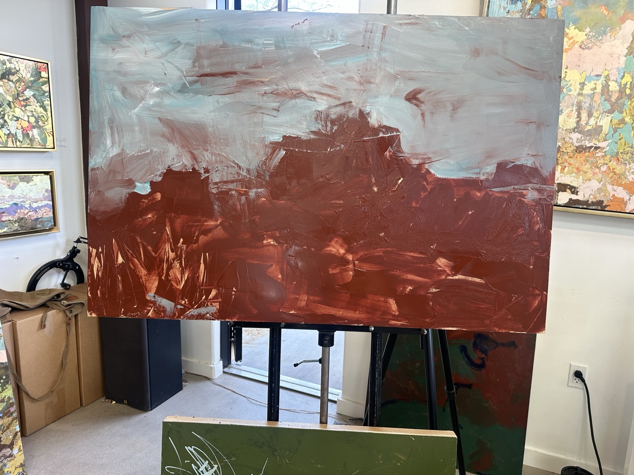 A Seasonal Salon holds three layers of that process: the real-time studio moment, how the painting develops materially, and the understanding that only becomes visible later.